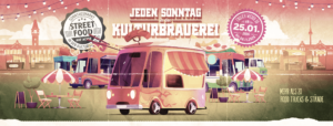• Ein riesiges Danke an unsere Gäste und ebenso großes Dankeschön an unsere Streetfoodler:innen. Voller Vorfreude starten wir ENDE JANUAR 2026 „Street Food auf Achse“ wieder. Ganz vorbei ist es natürlich noch nicht! Denn ab dem 24. November geht’s weiter mit dem Lucia-Weihnachtsmarkt in der Kulturbrauerei. Scrollen Sie bitte herunter, um mehr zu erfahren.